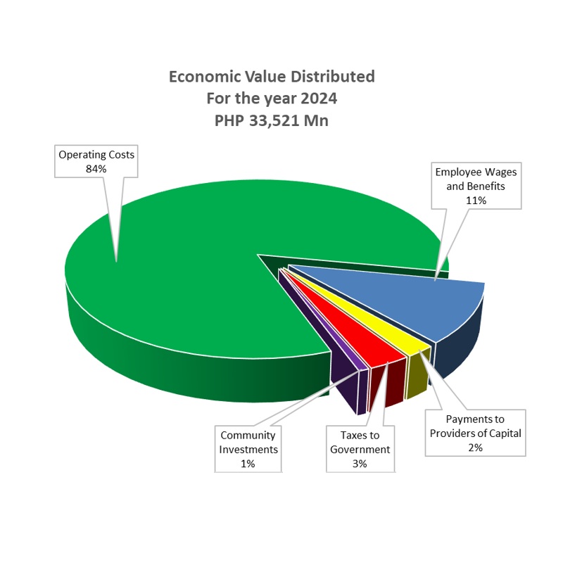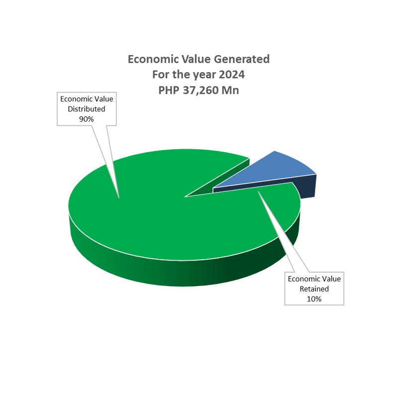 HI Group generated PhP37,260M of direct economic value impact and redistributed 90% of this to operating expenses, employee compensation, suppliers, capital providers, and the government coffers among the various stakeholders. The economic value generated for the year posted an increase of 221% against the prior year. The inclusion of the financial services and insurance segment in 2024 contributed to a significant portion, about 95%, of the value generated. The addition of the financial services and insurance segment has expanded our value chain and stakeholder base. Further, the education and property segments posted improvements in the results of their operations contributing to the increase in the value generated for the year.